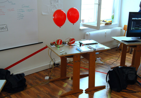 After integrating the software part with Marcus, this is how it looked at our tiny booth.