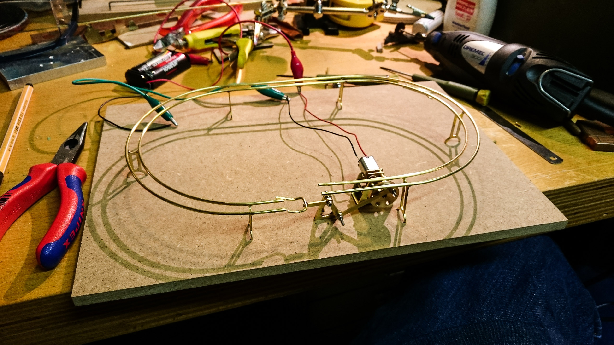 To form the oval tracks out of 2mm brass I bend them in a bending jig and pressed them into a template, milled on my ShapeOko. The support posts where also cut on my CNC out of 2mm brass sheet.