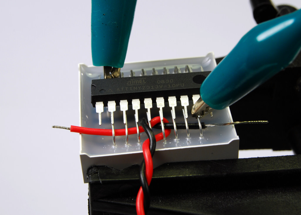Now solder both wires to the microcontroller.