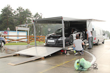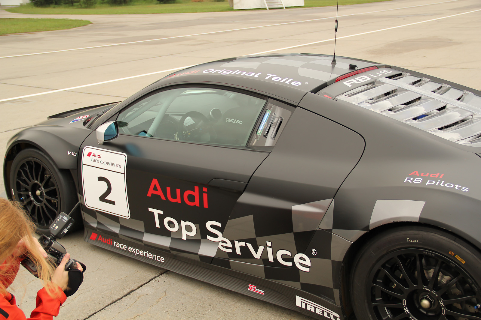 Everything was prepared for another test. This time with the real car, an Audi R8 LMS. We visited the Driving Center near Berlin to meet with the technicians of Audi Race Experience.