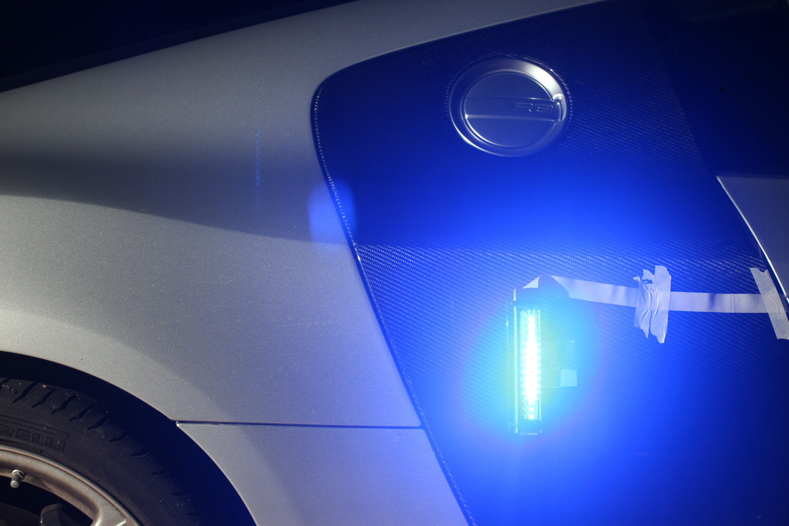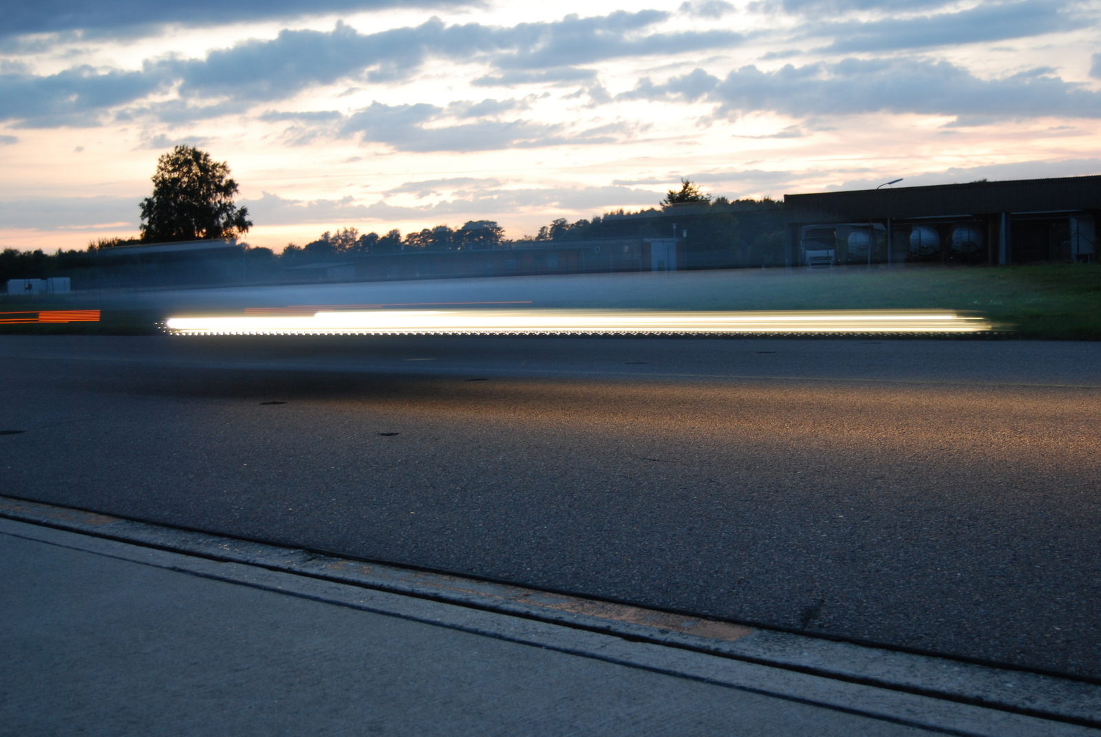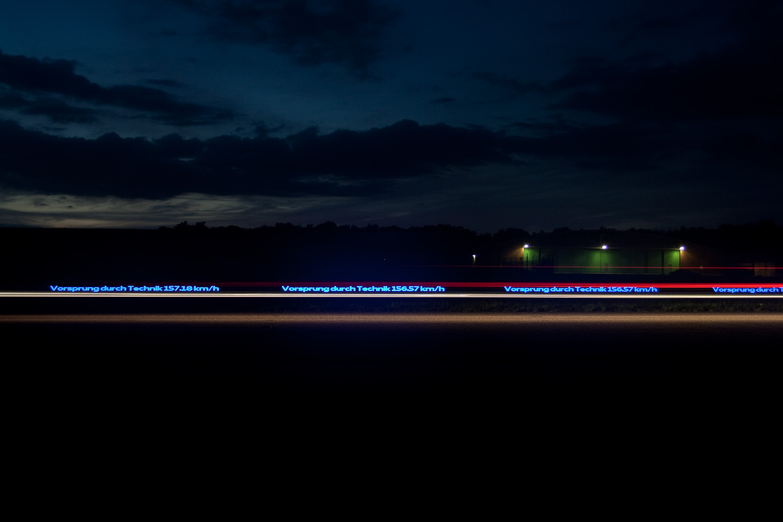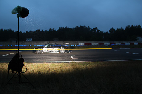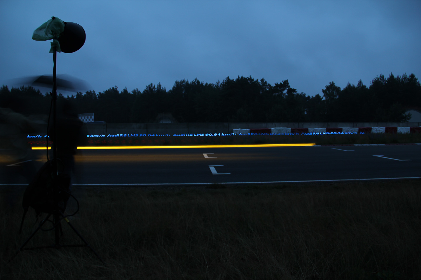 We installed the box behind the driver and the LED strip at the rear window. GPS signal reception wasn’t a problem so one of the drivers warmed up to drive some laps while we and a photographer prepared the cameras to shoot some test shots.