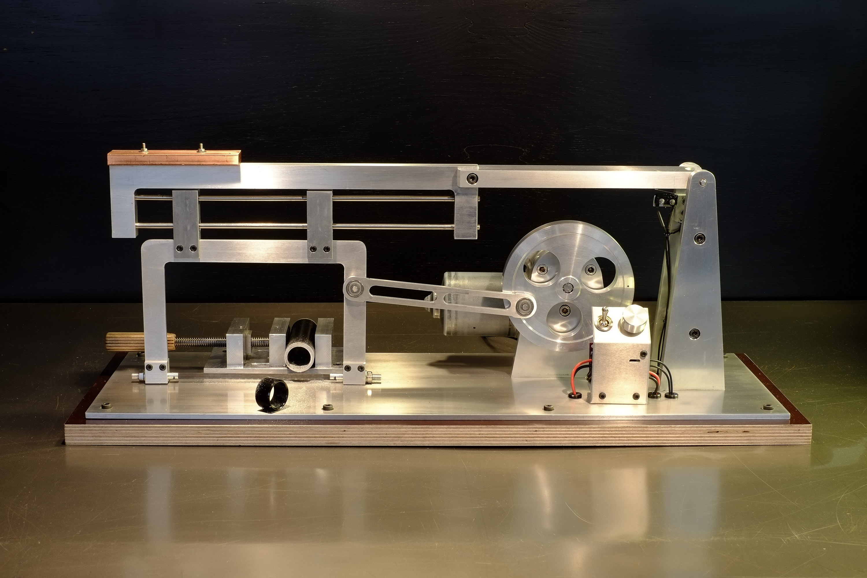 Four years ago I built The Almost Useless Machine, a tiny machine that tries to cut a wooden dowel. Here comes the second incarnation, a bit stronger and a bit more robust.
