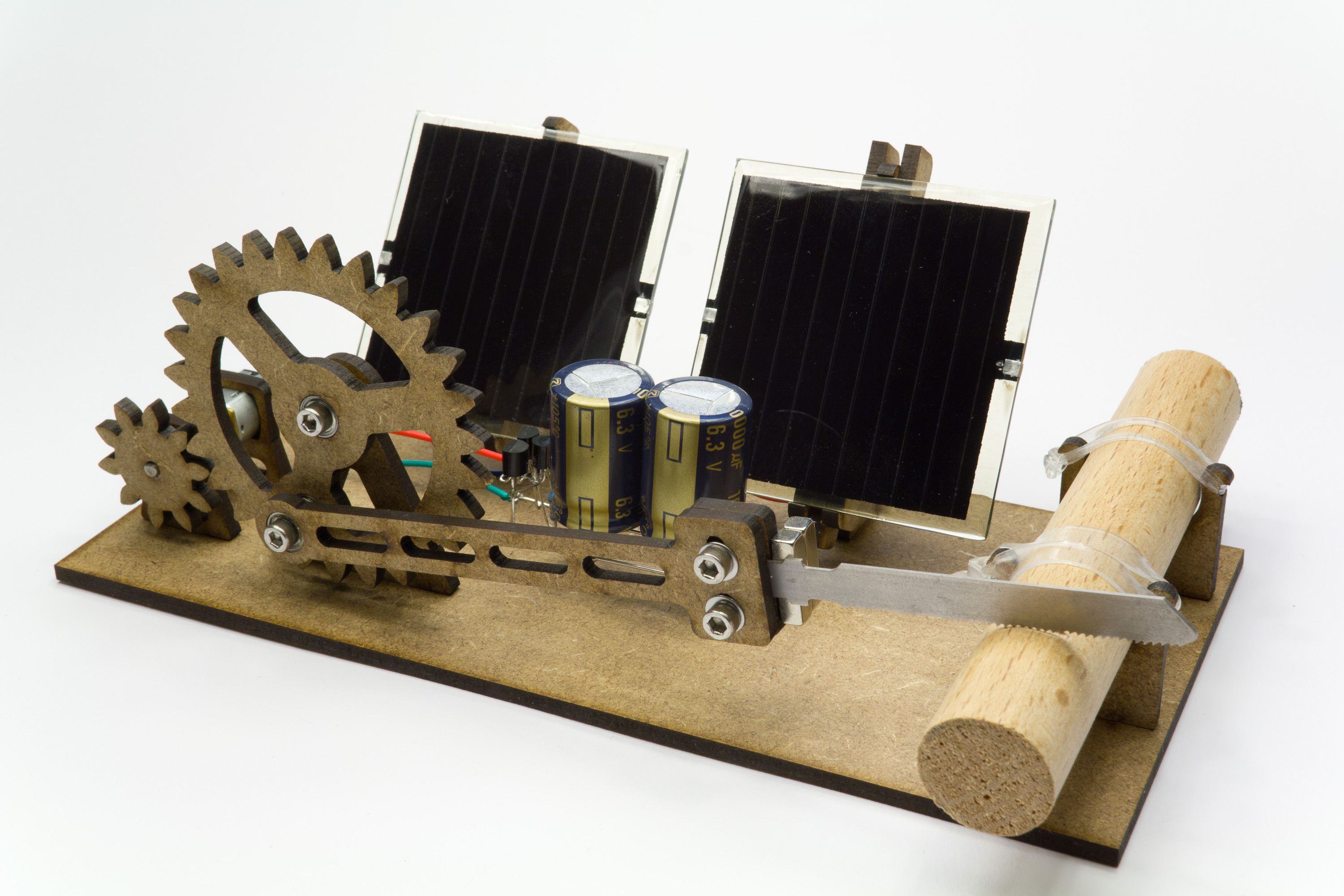 We all know, we should use more renewable energy. Here is my contribution. Use solar power if you want to cut 20mm wooden rods. And plan ahead because it may take a while.